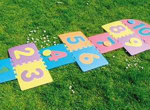 Hinkelbaan voor buiten (maar als het regent, mag 'ie vast ook wel binnen). Kleurige baan voor veel hinkelplezier.