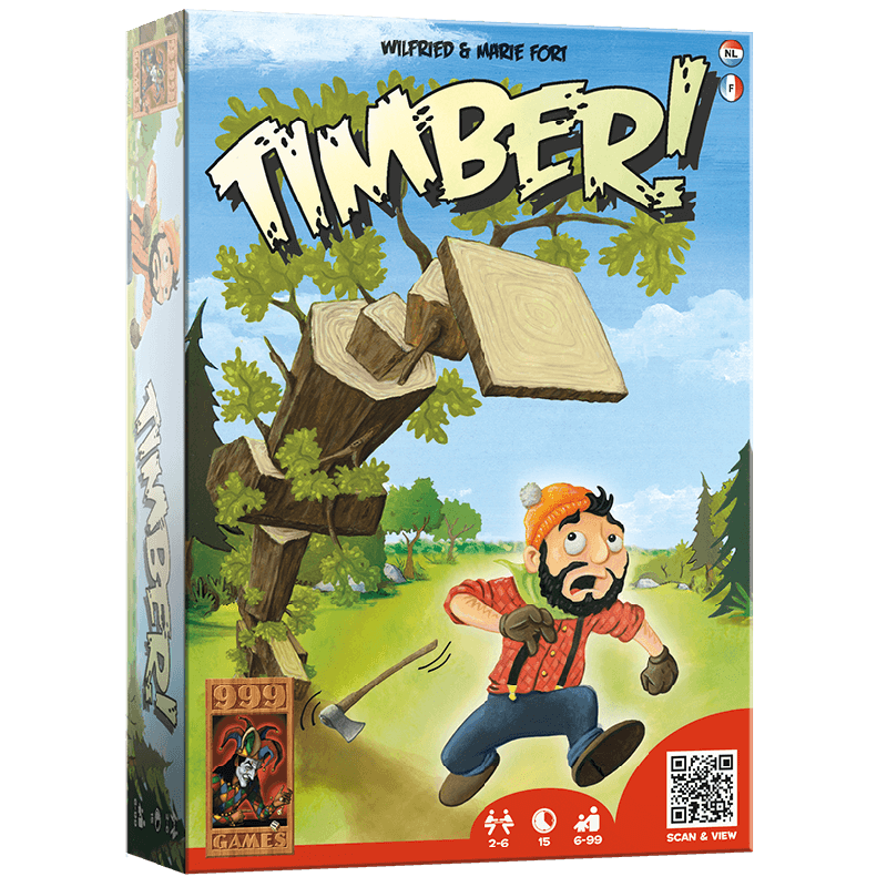 In dit vlotte behendigheidsspel kiezen jullie eerst een aantal bouwstenen. Daarna bouwen jullie gezamenlijk aan 1 toren.Geef steeds 1 bouwsteen door, die qua kleur of vorm gelijk aan de laatst gelegde moet zijn. Wie de bouwsteen ontvangt, legt deze op de toren. Dit gaat zo door totdat de toren omvalt. De speler die de laatste bouwsteen doorgaf scoort dan een punt. Wie heeft aan het einde van het spel de meeste punten?Timber! biedt door de eenvoudige spelregels plezier aan groepen en gezinnen van alle leeftijden!
